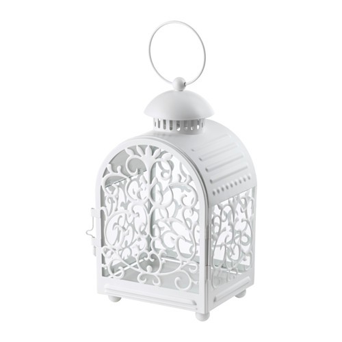 LAMPION BIAŁY AŻUROWY metalowy o wysokości 26 cm.
