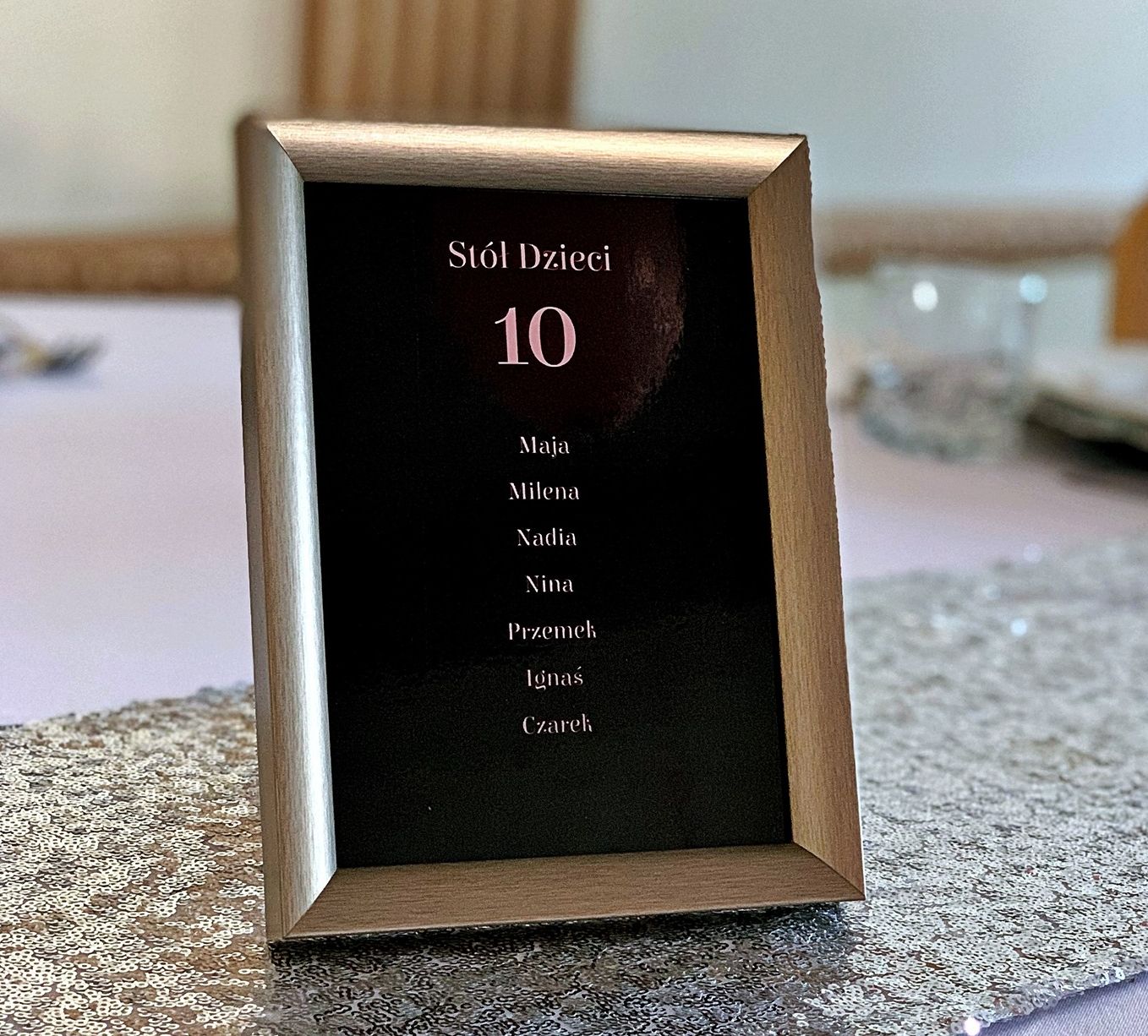 Ramka może pełnić funkcje numeru stołu, tabliczkę informacyjną etc.