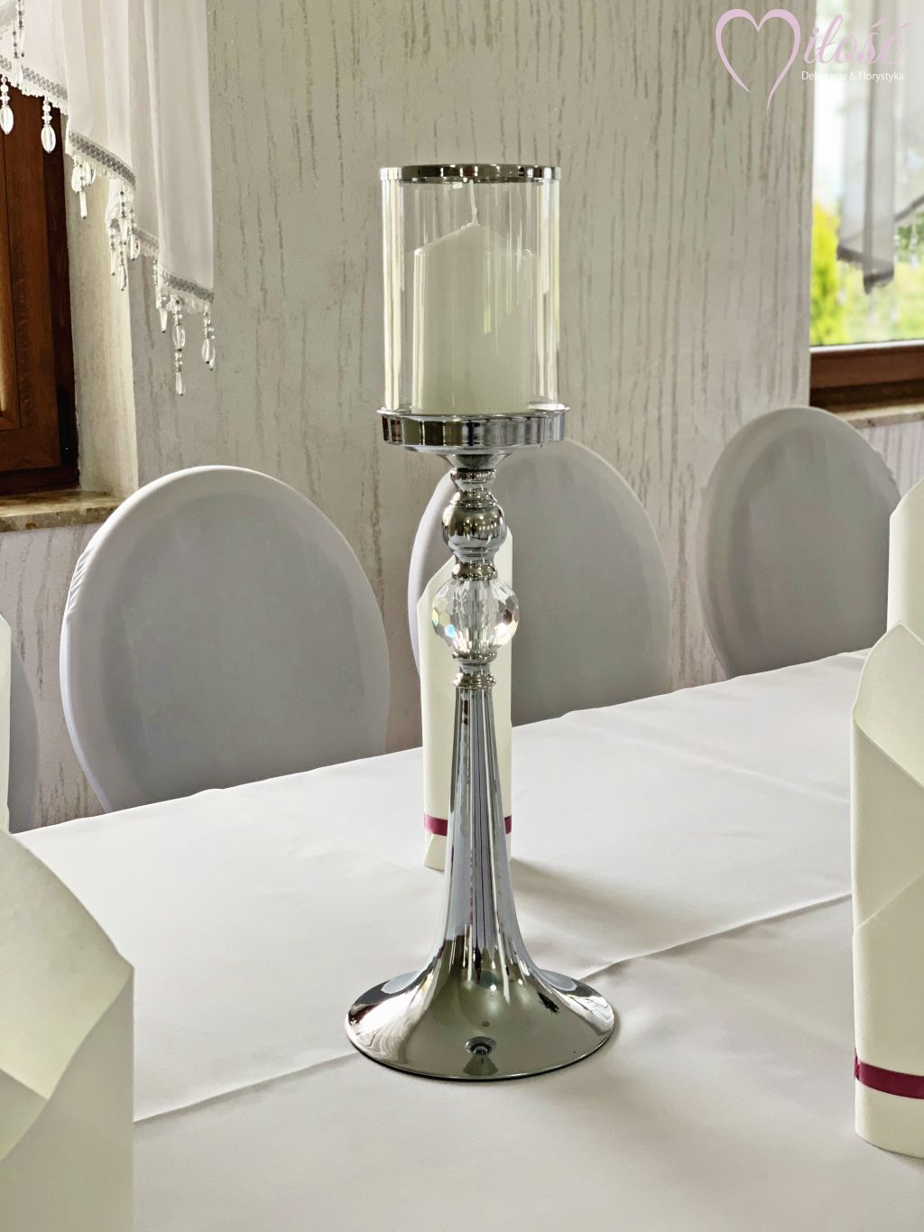 ŚWIECZNIK SREBRNY Z KRYSZTAŁEM