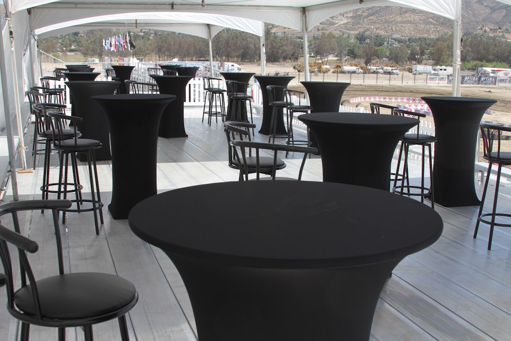 Składany stół bankietowy z pokrowcem elastycznym w kolorze czarnym.