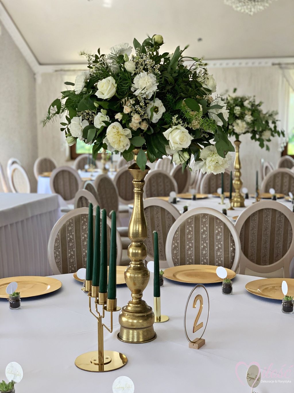 ŚWIECZNIK ZŁOTY 4-RAMIENNY metalowy o wysokości 27 cm.