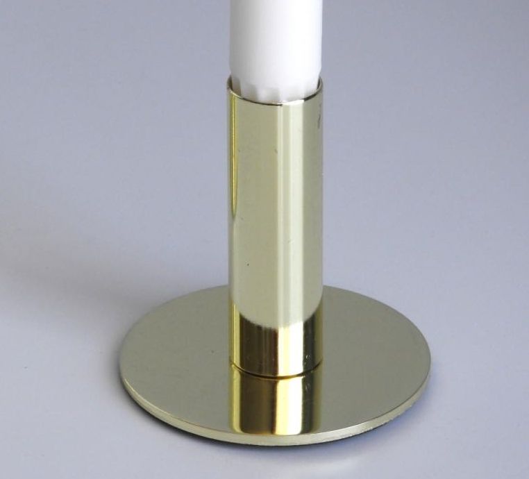ŚWIECZNIKI ZŁOTE METALOWE na świece stołową, stożkową. Świecznik o wysokości 8 cm. Dostępność: 20 sztuk